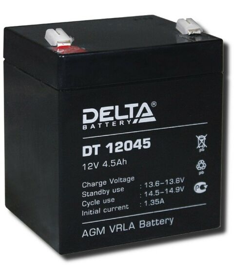 Аккумулятор Delta DT 12045 свинцово-кислотный, герметичный аккумулятор, емкость аккумулятора: 4.5 Ач