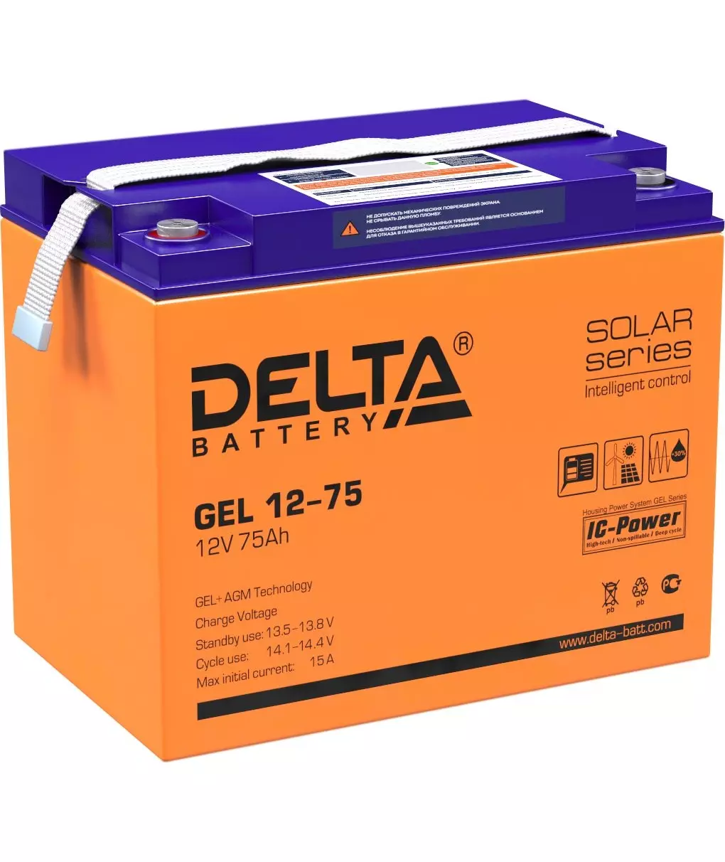 Герметизированные свинцово-кислотные аккумуляторы DELTA серии GEL изготовлены по технологии AGM+GEL: combined AGM and GEL technology. Аккумуляторные батареи DELTA серии GEL (от 33 Ач) оснащены встроенным контроллером и LСD дисплеем, на котором отображается статус работы АКБ.