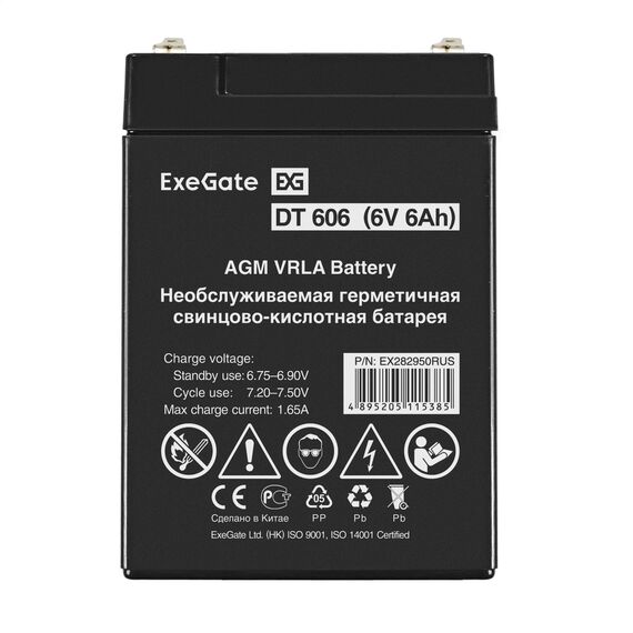 Аккумулятор для слаботочных систем Exegate DT 606 6V, 6Ah [EX282950RUS]