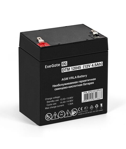 Аккумулятор Exegate DTM 12045 12V, 4.5Ah, клеммы F1 [EP212310RUS]