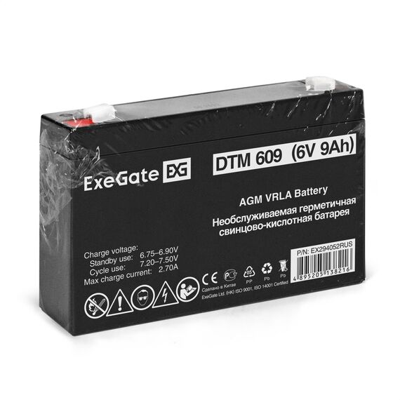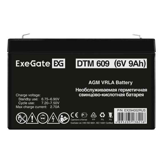 Аккумулятор Exegate DTM 609 6V, 9Ah, клеммы F1 [EX294052RUS]