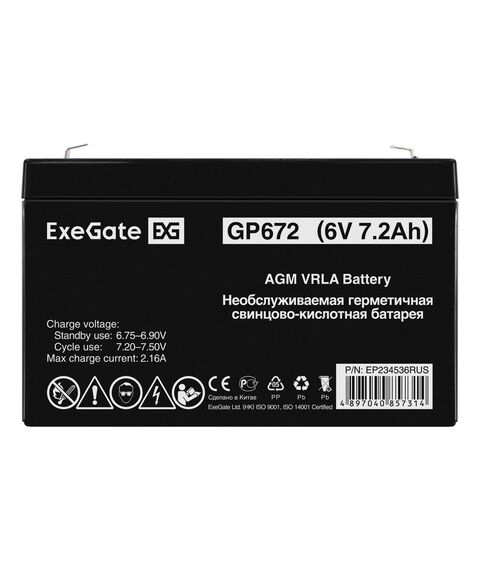 Аккумулятор для UPS Exegate EXG672/GP672 6V, 7.2Ah [EP234536RUS]