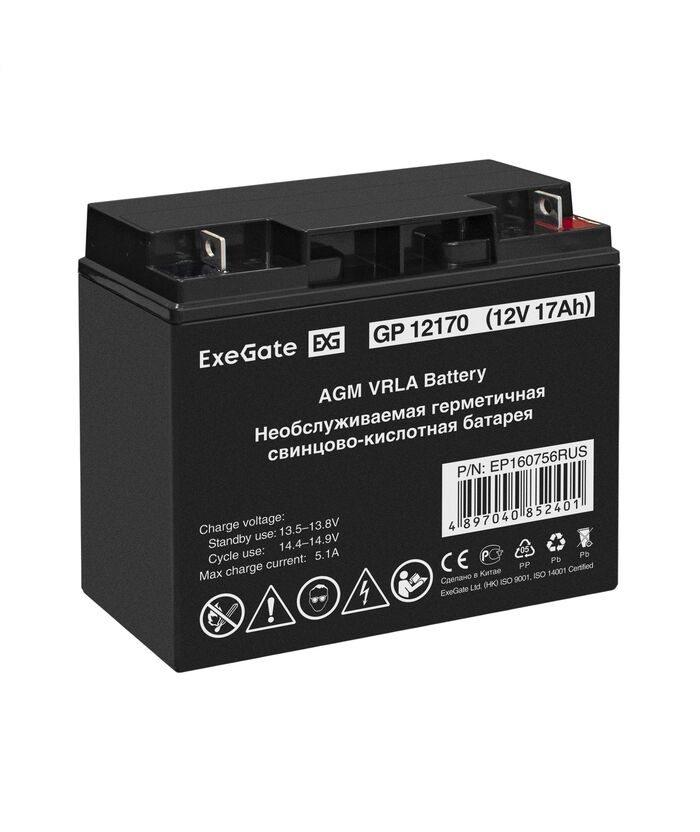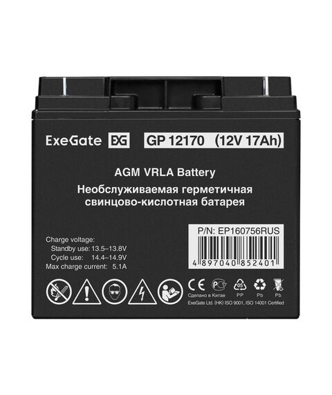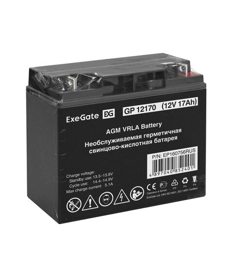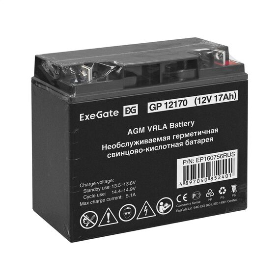Аккумулятор Exegate GP12170 12V, 17Ah, клеммы F3, болт М5 с гайкой [EP160756RUS]