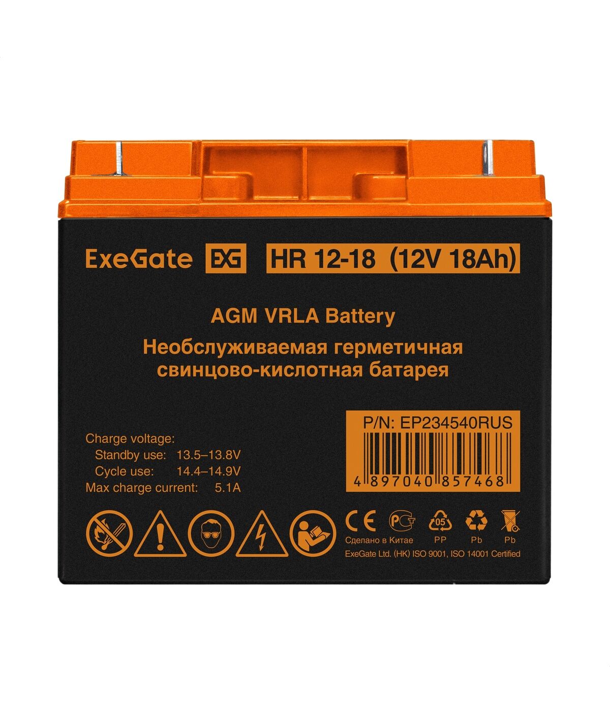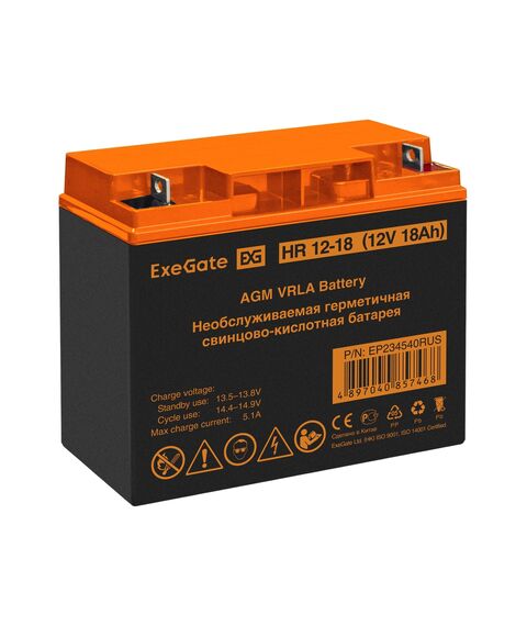 Аккумулятор Exegate HR 12-18 12V, 18Ah, клеммы F3, болт М5 с гайкой [EP234540RUS]