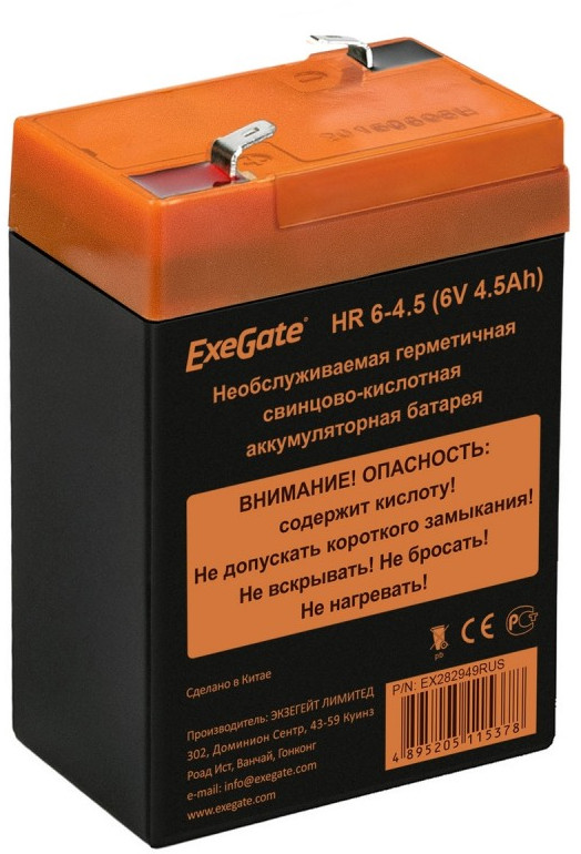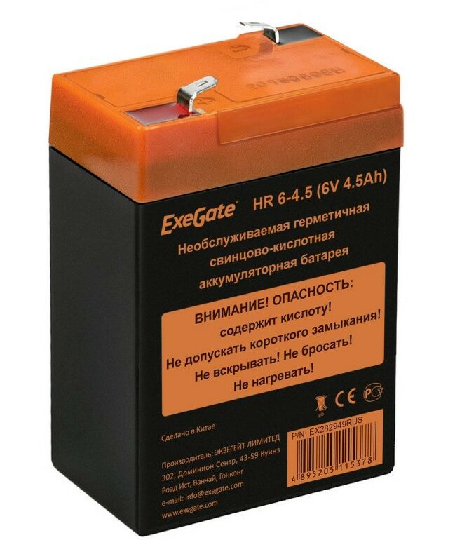 Аккумулятор для UPS Exegate HR 6-4.5 6V, 4.5Ah [EX282949RUS]