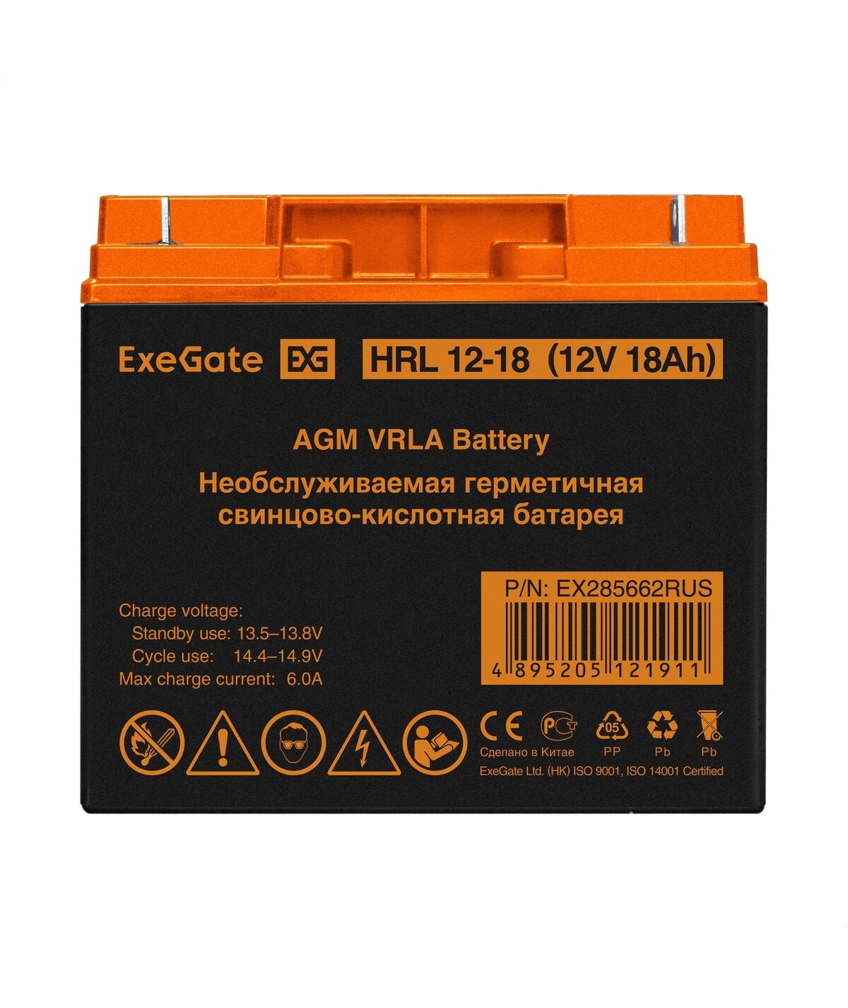 Аккумулятор Exegate HRL 12-18 12V, 18Ah, клеммы F3, болт М5 с гайкой [EX285662RUS]
