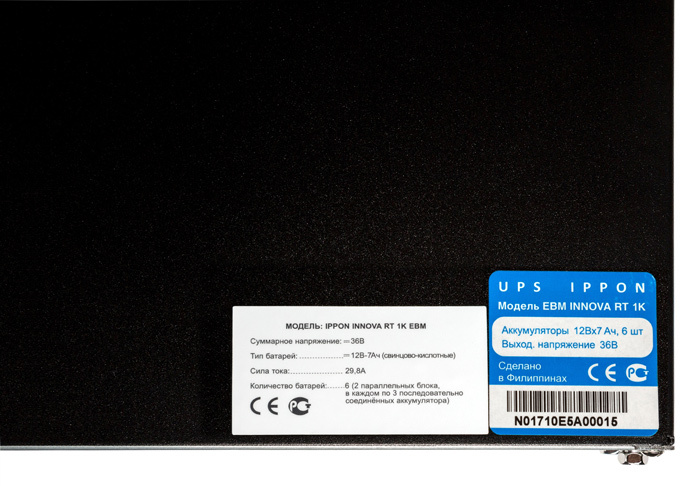 | Особенности | Герметичные необслуживаемые, свинцово-кислотные батареи, 12 В / 7 Ач, 2 х 3 шт |