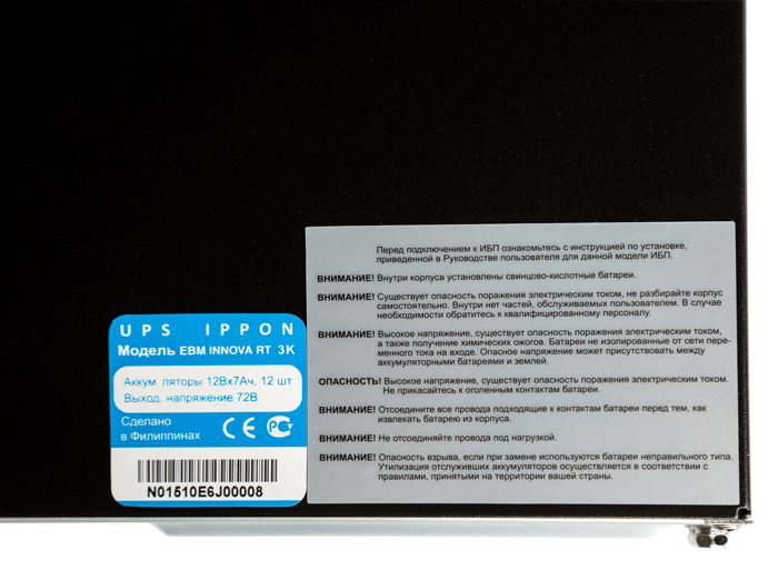 | Особенности | Герметичные необслуживаемые, свинцово-кислотные батареи, 12 В / 7 Ач, 2 х 6 шт |
