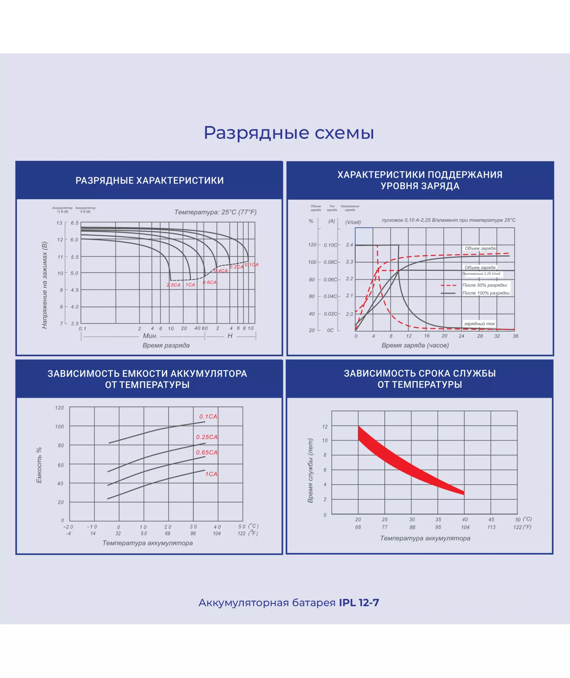 | Влияние температуры на емкость | 40 C (104 F) 103%, 25 C (77 F) 100%, 0 C (32 F) 86% |