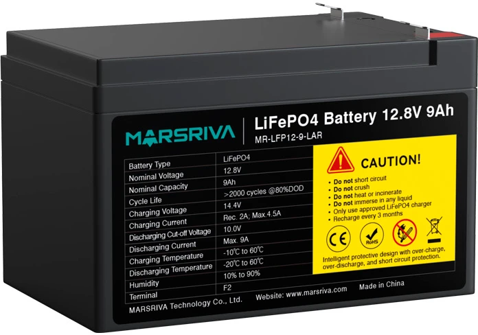Батарея MARSRIVA MR-LFP12-9-LAR LiFePO4, 12.8В/9.0Ач, Класс A, 2000 циклов