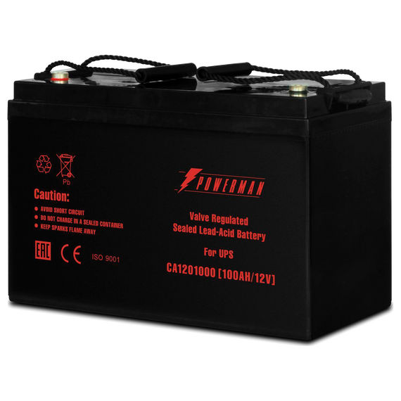 Напряжение 12В, емкость 100Ач, макс. ток разряда 800А, макс. ток заряда 30А, свинцово-кислотная типа AGM, тип клемм М2, Д/Ш/В 329/172/215, 27.7 кг
