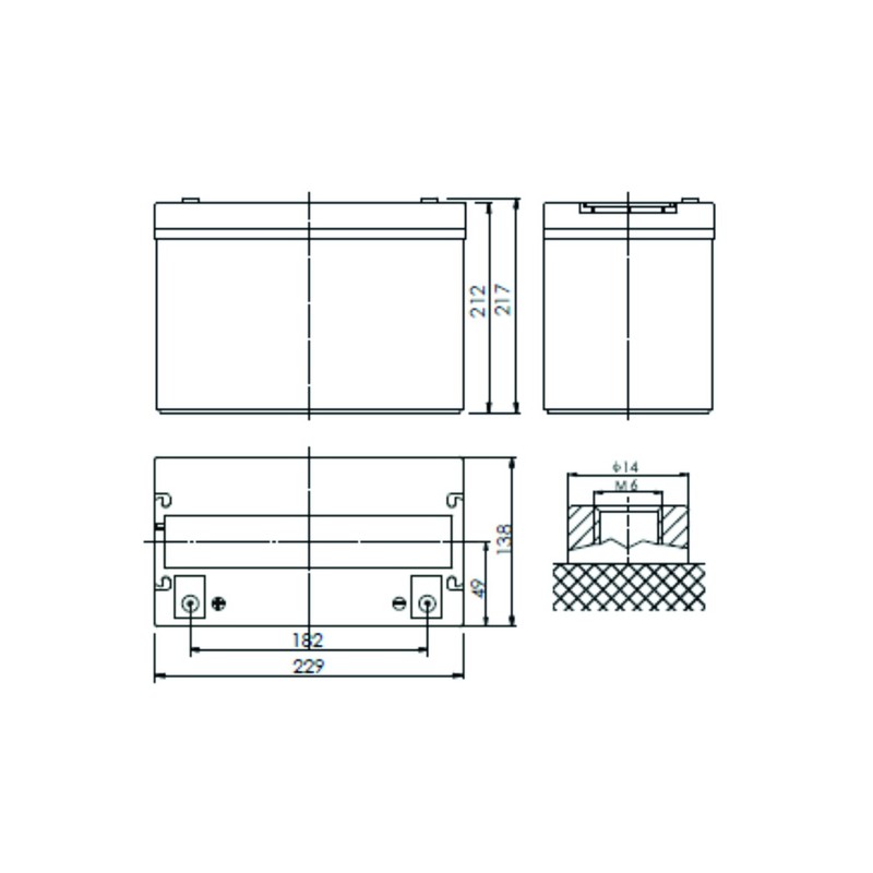 Напряжение 12В, емкость 50Ач, макс. ток разряда 500А, макс. ток заряда 15А, свинцово-кислотная типа AGM, тип клемм M1, Д/Ш/В 229/138/208, 16.2 кг.