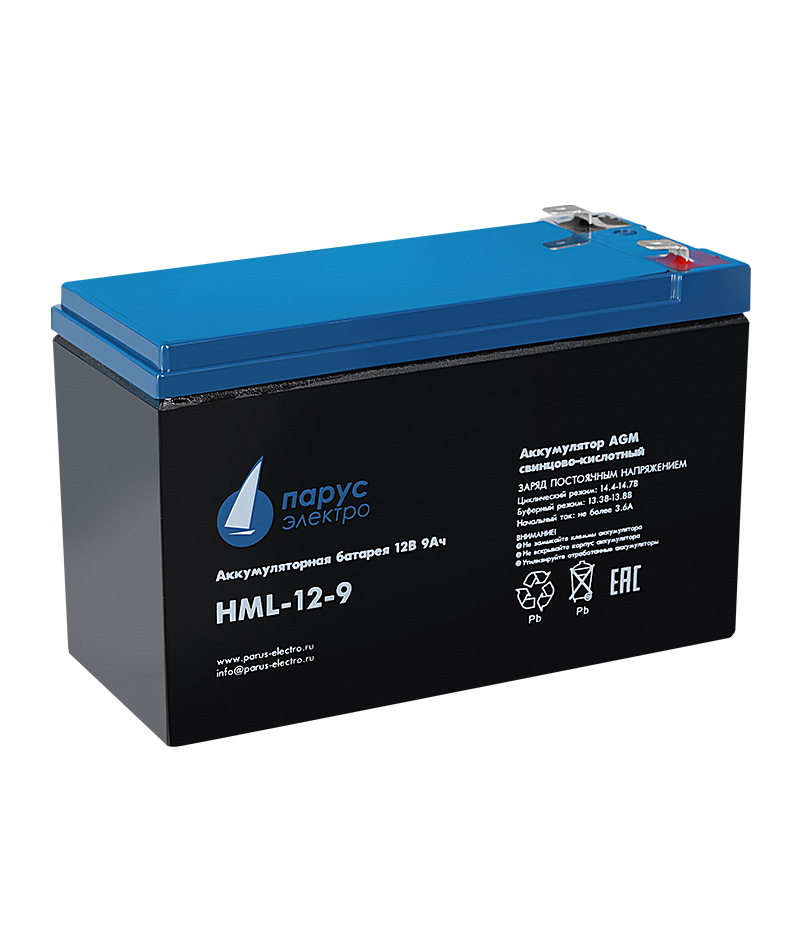 Свинцово-кислотная аккумуляторная батарея HML-12-9 по технологии AGM для длительного срока службы с высокой цикличностью. Применяется для систем бесперебойного питания, безопасности и аварийного освещения, оборудования связи и прочего оборудования с большим количеством циклов разряда - заряда батарей. Электролит заключен в сепараторах между пластин и всегда остается неподвижным, что позволяет эксплуатировать АКБ в любом положении.