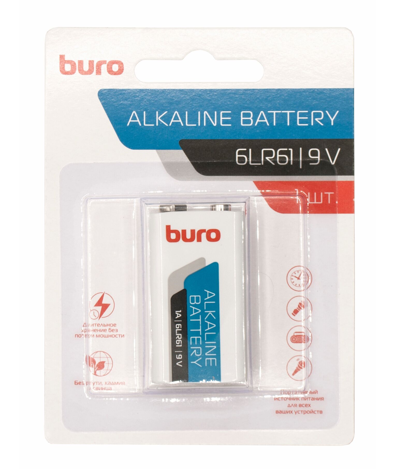 Батарея BURO Alkaline 6LR61 9V 1шт блистер