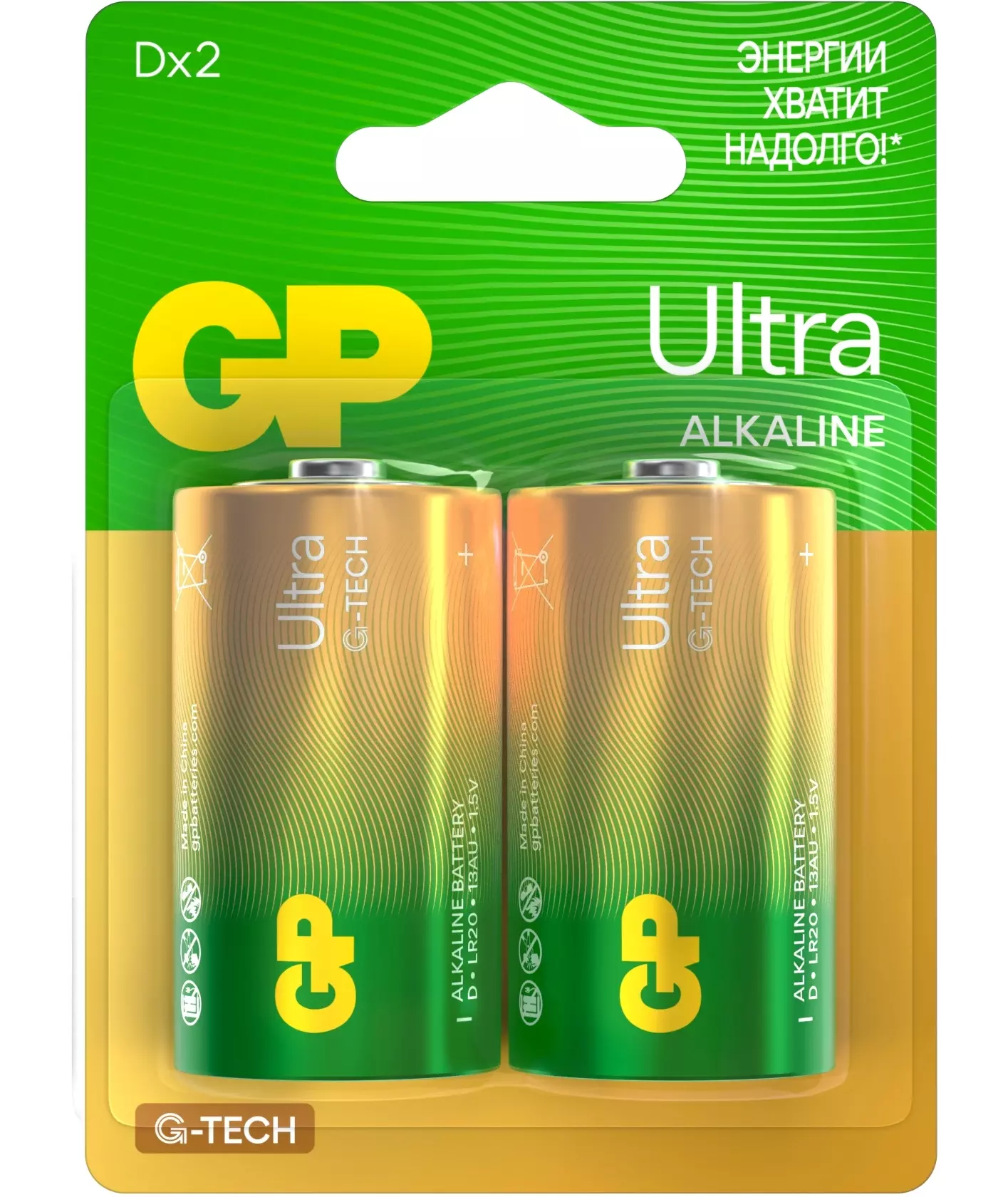 Батарея GP 13AUA21-2CRSBC2 Ultra Alkaline D (2шт) блистер 20/160
