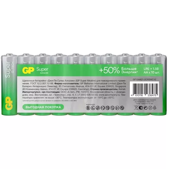 Батарея GP 15AA21-2CRSWC10 100/800 Super Alkaline AA (10шт) спайка