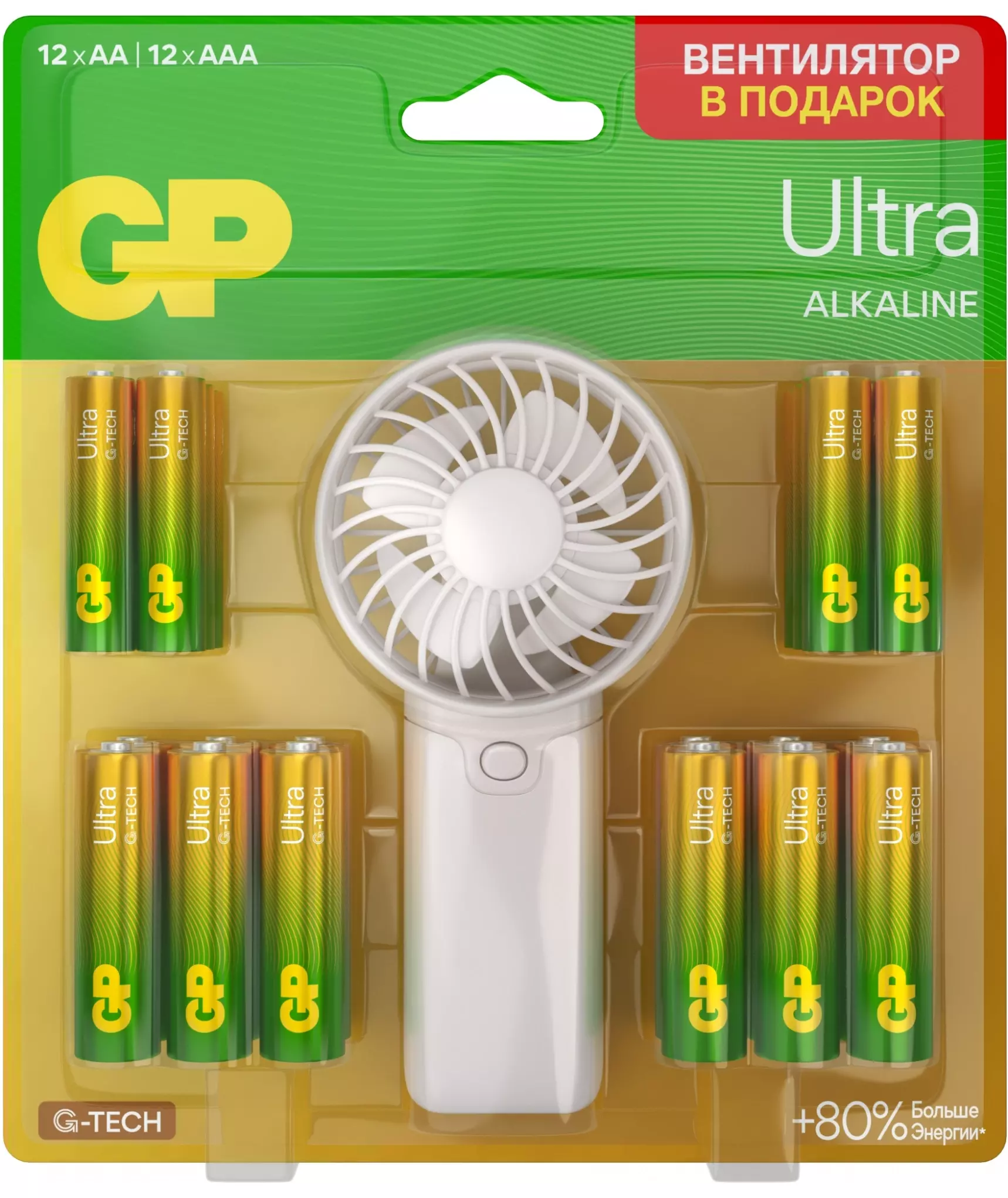 Батарея GP 15AU/24AU/FANWETA21-2CRSBC24 AA/AAA (промо:Вентилятор в подарок) (24шт) блистер