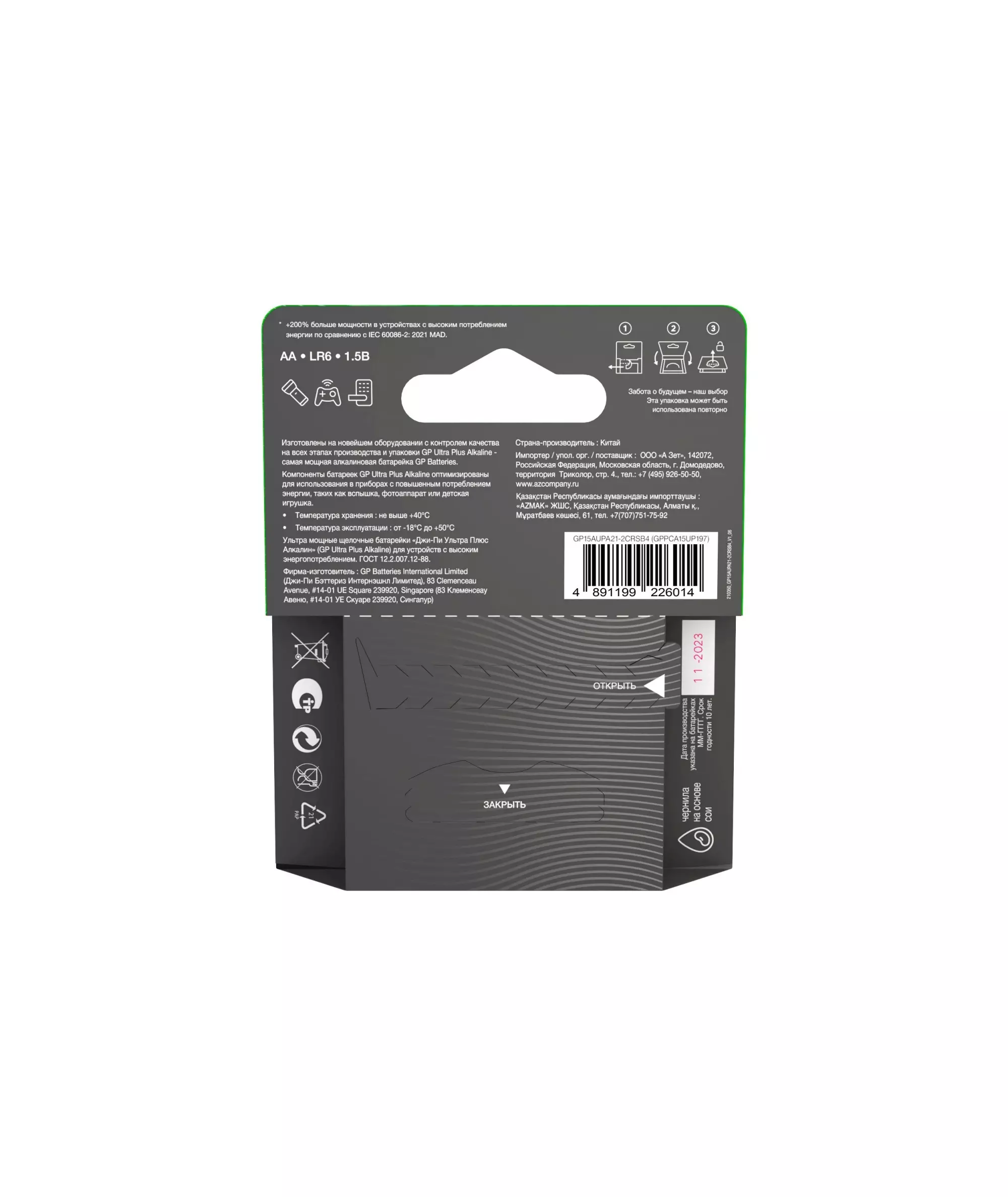| Дополнительная информация | Новая улучшенная серия щелочных батареек GP с технологией G-Tech отличается высочайшей производительностью и стабильным качеством, обеспечивая длительное время непрерывной работы ваших устройств. |