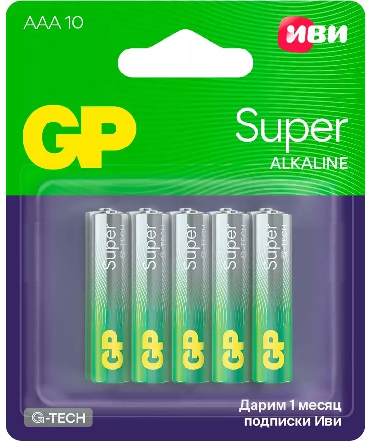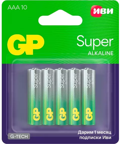 Батарея GP 24A/IVI-2CR10 Super Alkaline AAA (10шт) блистер [24A/IVI-2CR10_GTECH 100/1000]