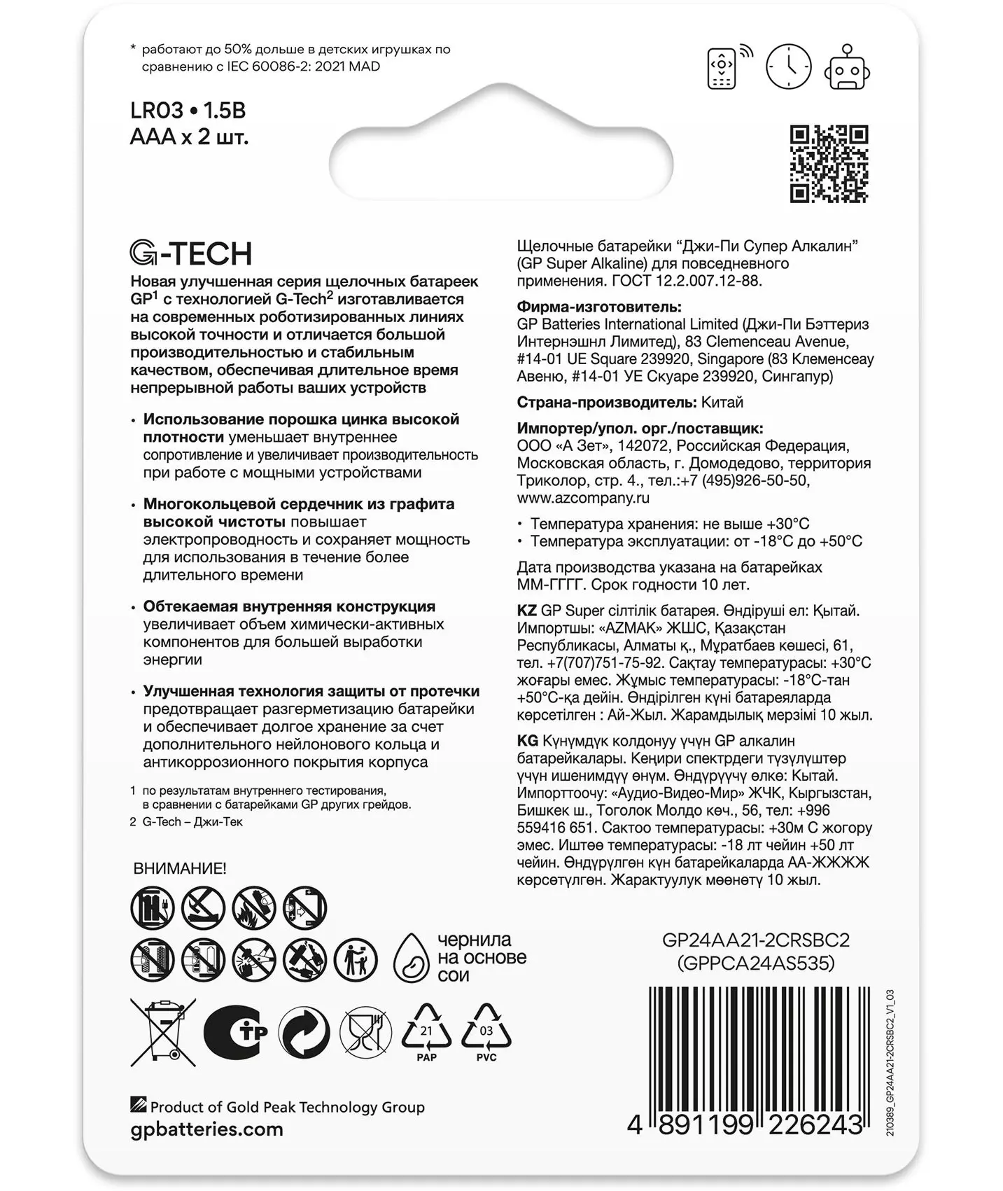 Батарея GP 24AA21-2CRSBC2 20/160 Super Alkaline AAA (2шт)