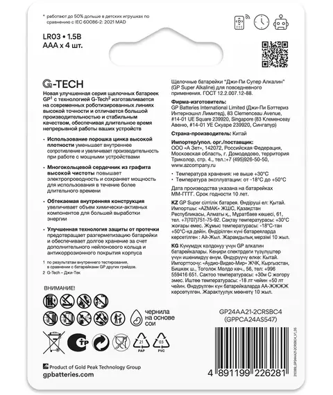 Батарея GP 24AA21-2CRSBC4 Super AAA (4шт)