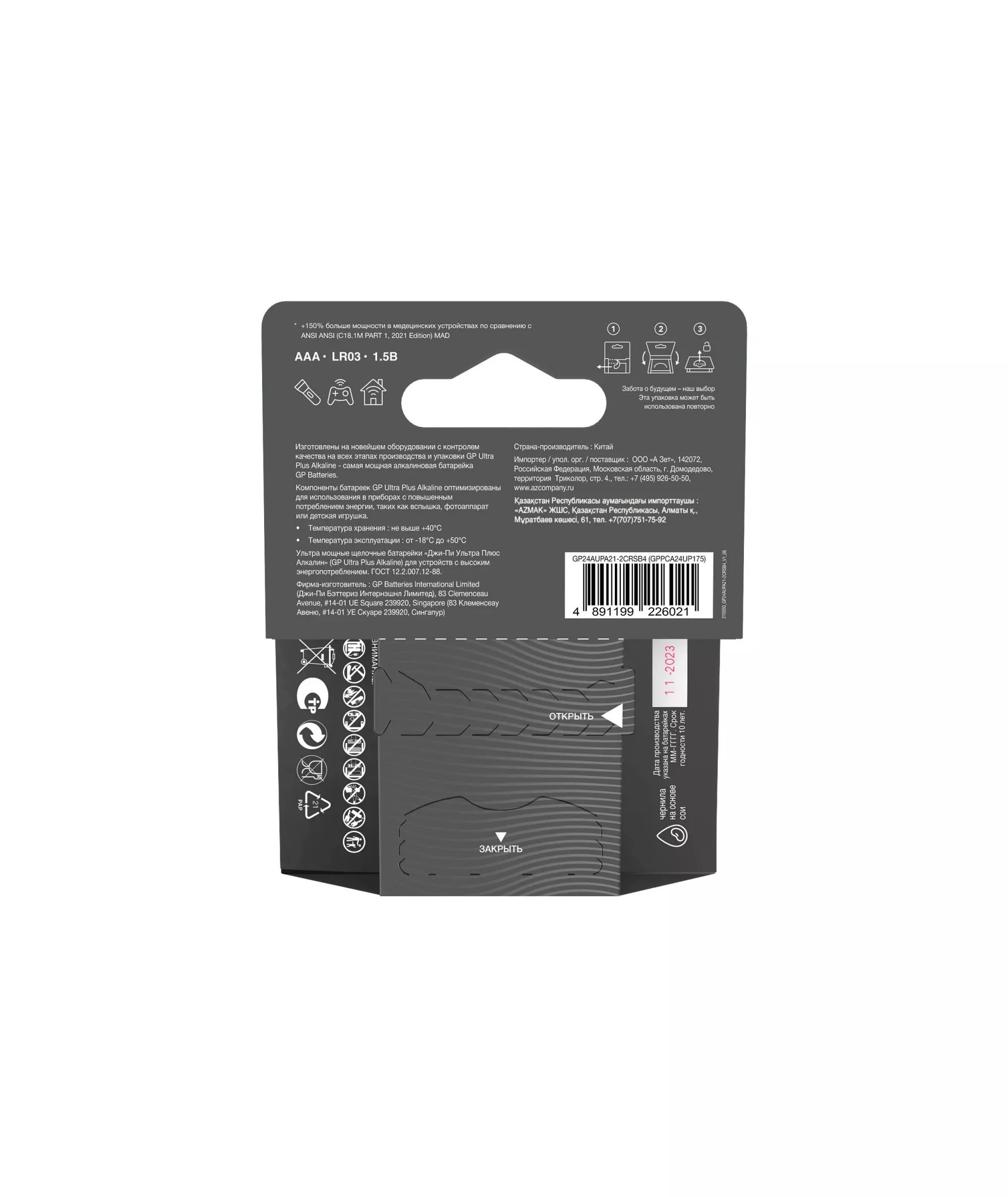 | Дополнительная информация | Новая улучшенная серия щелочных батареек GP с технологией G-Tech отличается высочайшей производительностью и стабильным качеством, обеспечивая длительное время непрерывной работы ваших устройств. |
