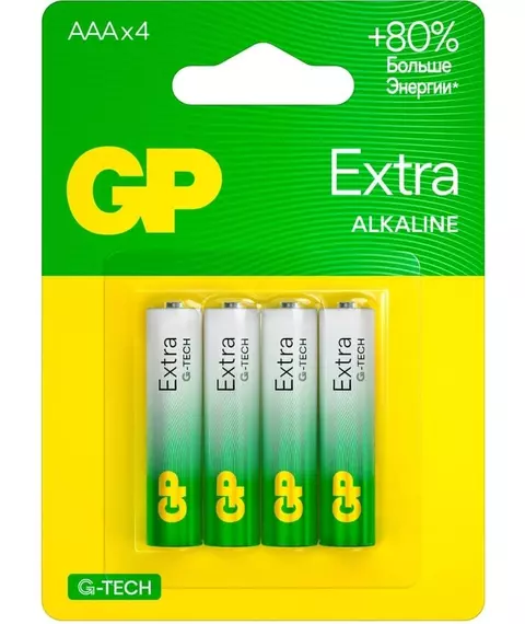 Батарея GP 24AXA21-2CRSBC4 40/320 Extra Alkaline AAA (4шт) блистер