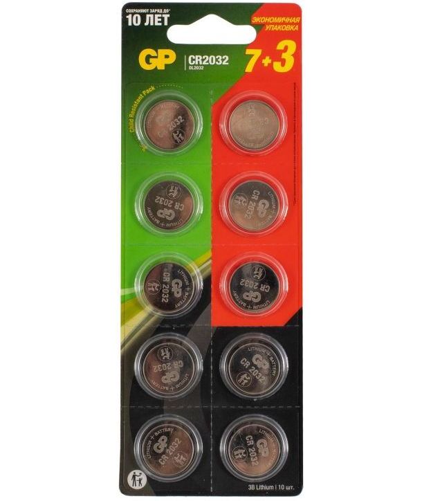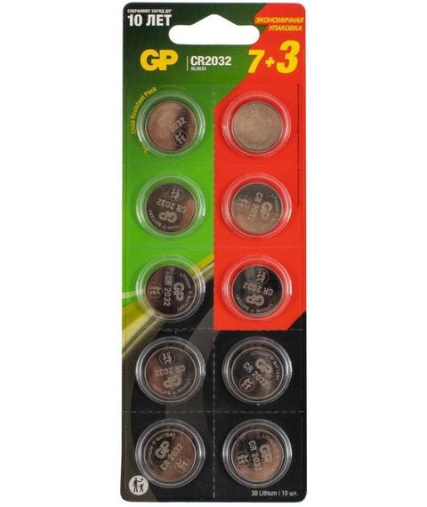 Батарея GP CR2032-7/3-2CR10 Lithium Cell (10шт) блистер [15743]