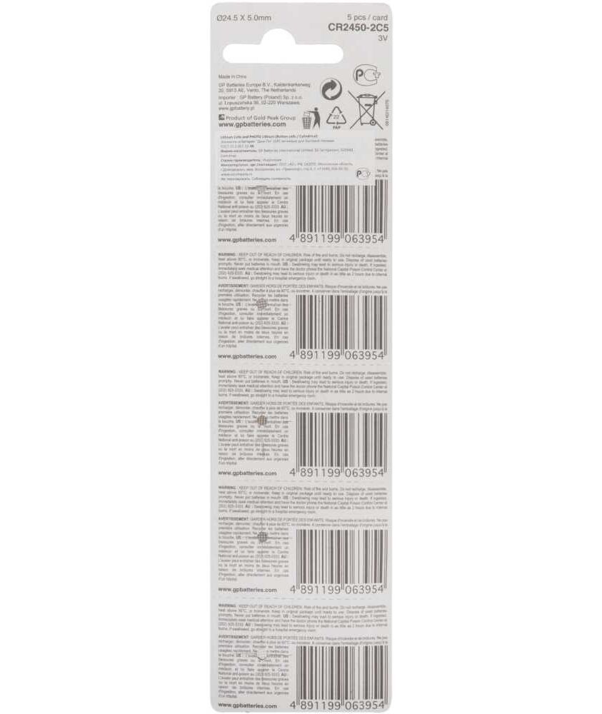 Батарея GP CR2450-8C5 Lithium (5шт)