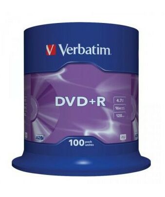 Диск DVD+R Verbatim 4.7Gb 16x Cake Box 100 100 шт. [43551]