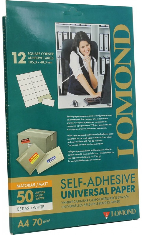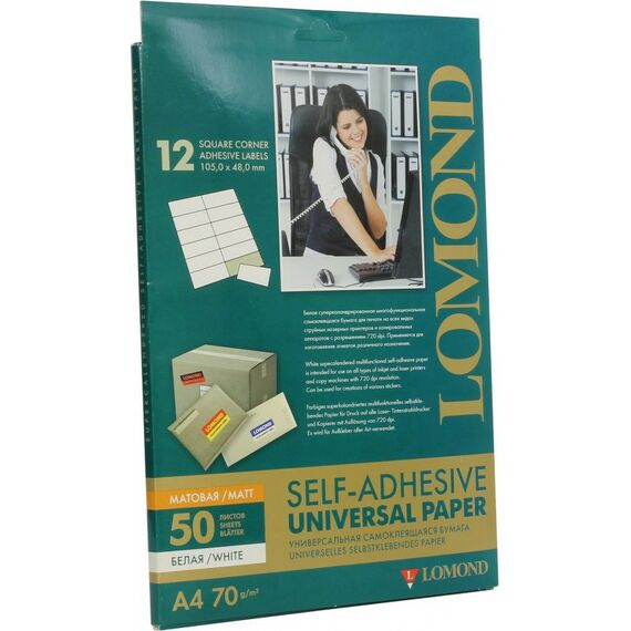 Самоклеящаяся бумага Lomond 2100065 универсальная для этикеток, A4, 12 делен. (105 x 48 мм), 70 г/м2, 50 листов