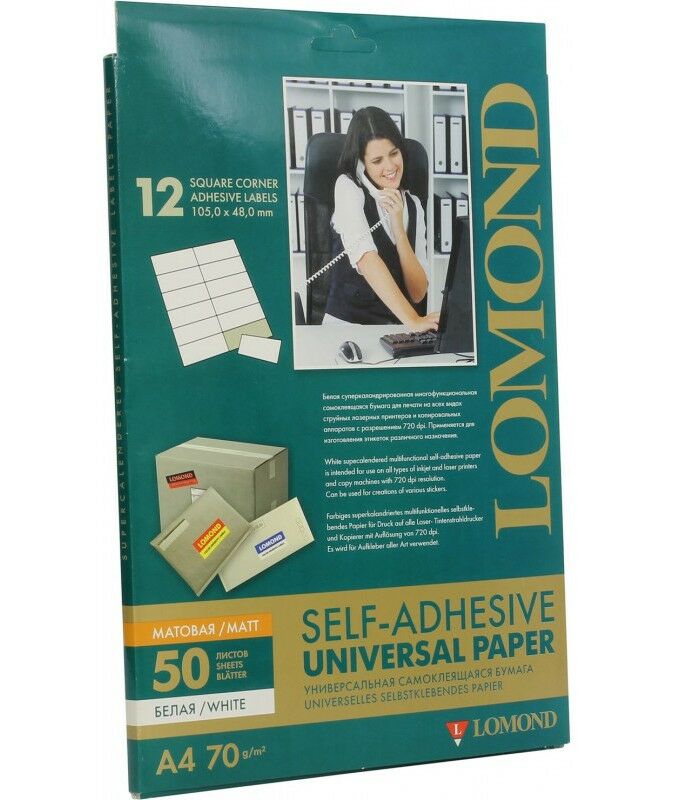 Самоклеящаяся универсальная бумага для этикеток, A4, 12 шт. (105 x 48 мм), 70 г/м2, 50 листов