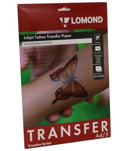 Самоклеящаяся прозрачная плёнка для изготовления временных татуировок Lomond 2010450 A4, 5 листов