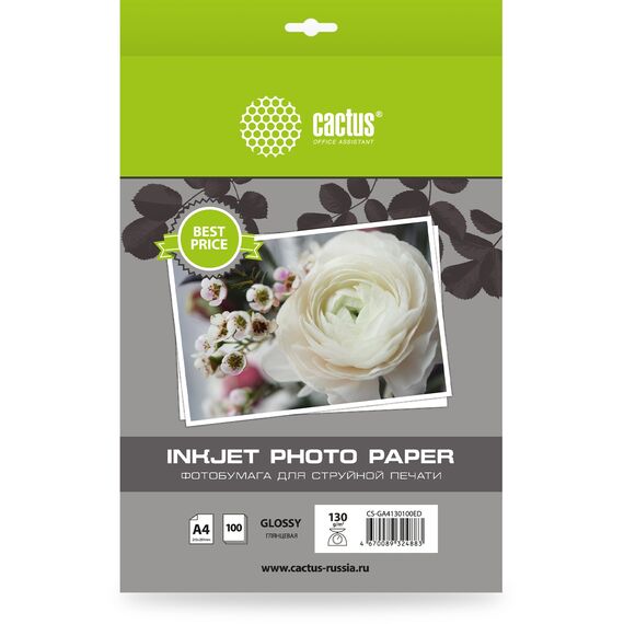 Фотобумага Cactus CS-GA4130100ED A4 130г/м2 100л белый глянцевое для струйной печати
