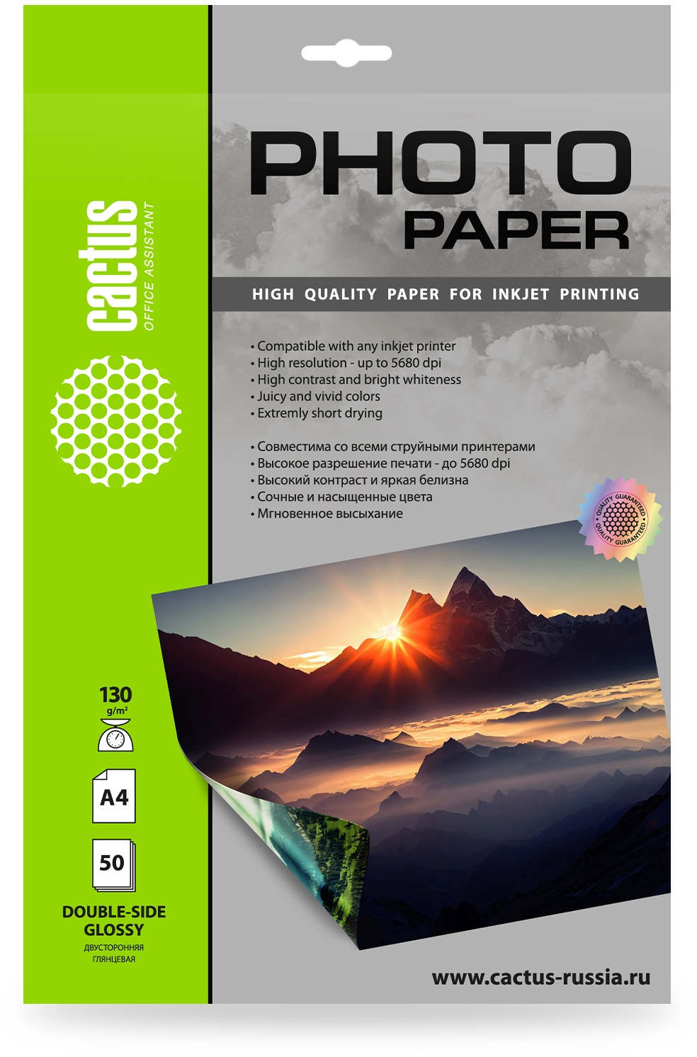 Фотобумага Cactus CS-GA413050DS A4 130г/м2 50л белый глянцевое для струйной печати