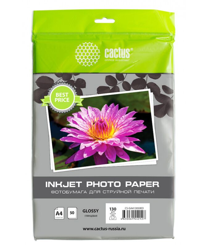 Фотобумага Cactus CS-GA413050ED A4 130г/м2 50л белый глянцевое для струйной печати