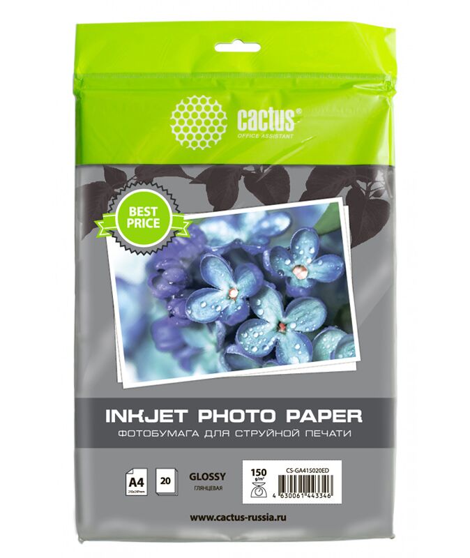 Фотобумага Cactus CS-GA415020ED A4 150г/м2 20л белый глянцевое для струйной печати