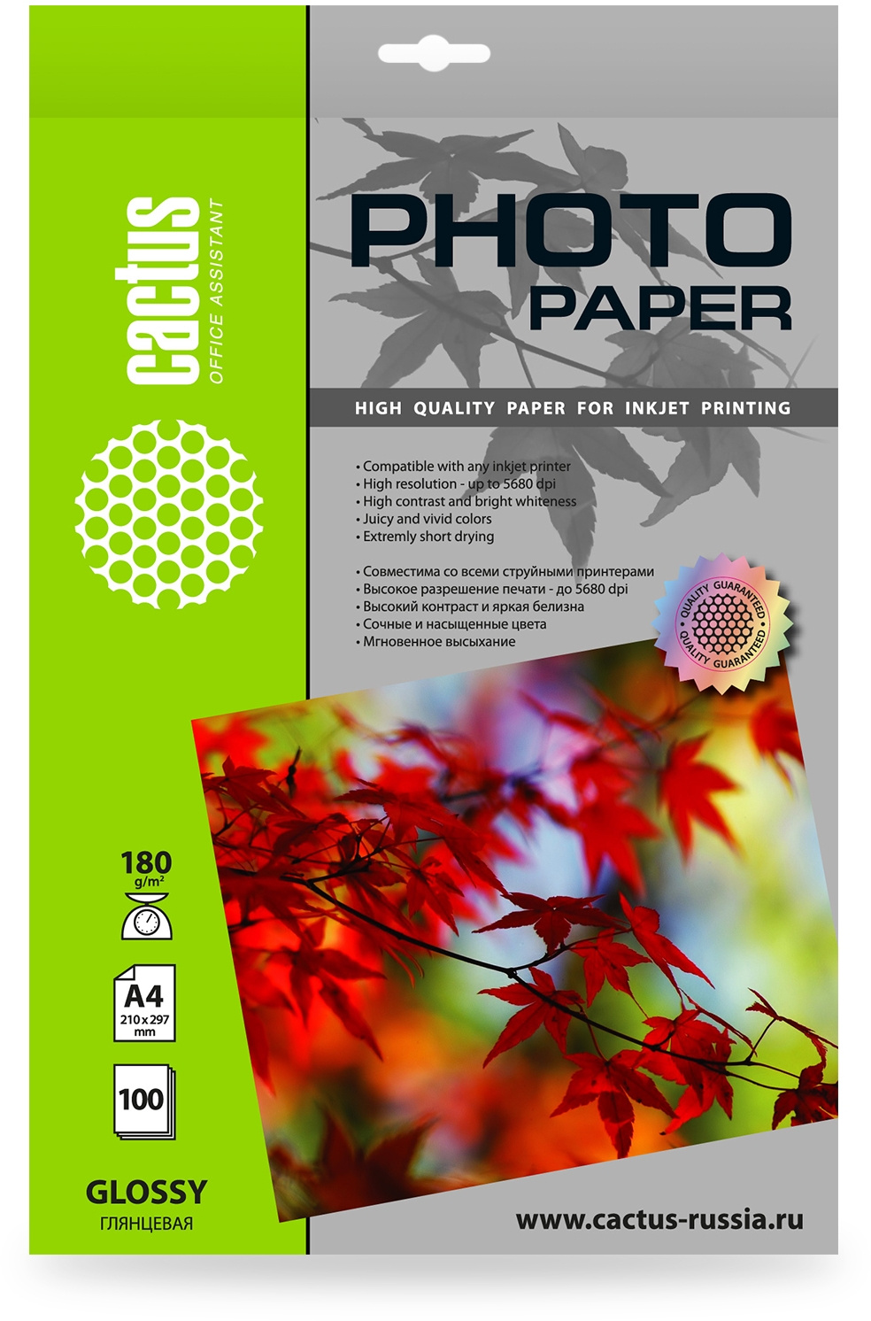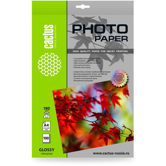 Фотобумага Cactus CS-GA4180100 A4 180г/м2 100л белый глянцевое для струйной печати
