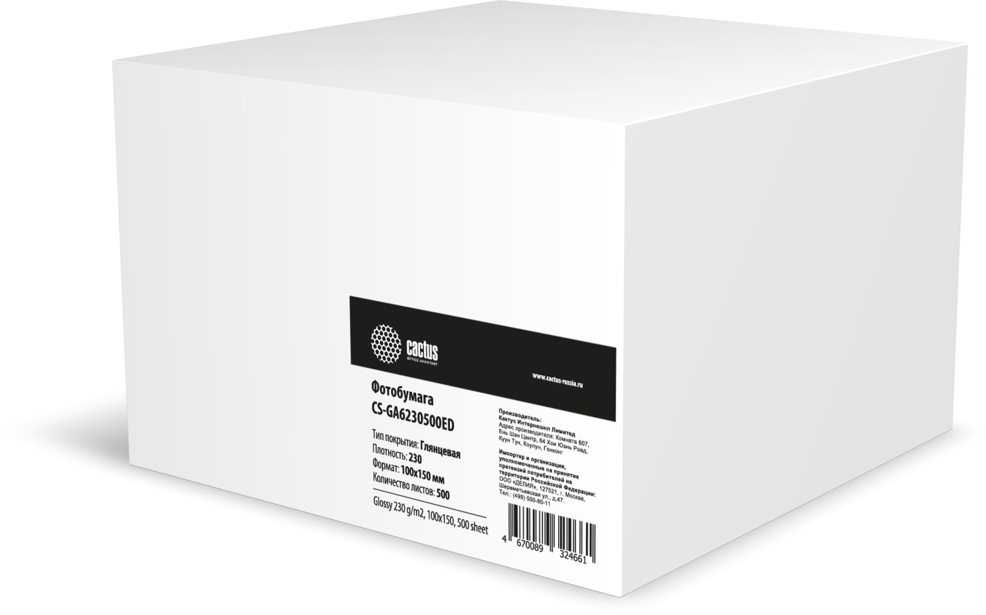 Фотобумага Cactus CS-GA6230500ED A6 230г/м2 500л белый глянцевое для струйной печати