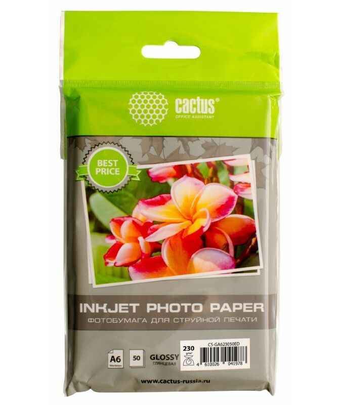Фотобумага Cactus CS-GA623050ED 10x15, 230г/м2, 50л, белый, глянцевое, для струйной печати
