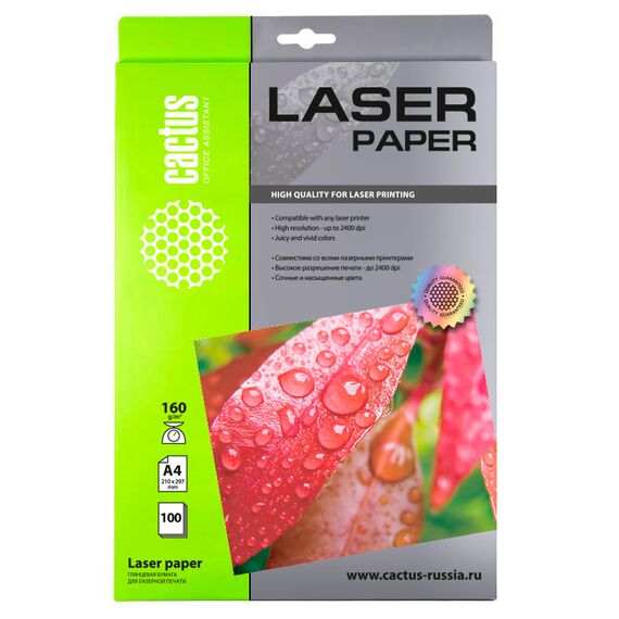 Фотобумага Cactus CS-LPA4160100 A4, 160г/м2, 100л., белый, глянцевое, для лазерной печати