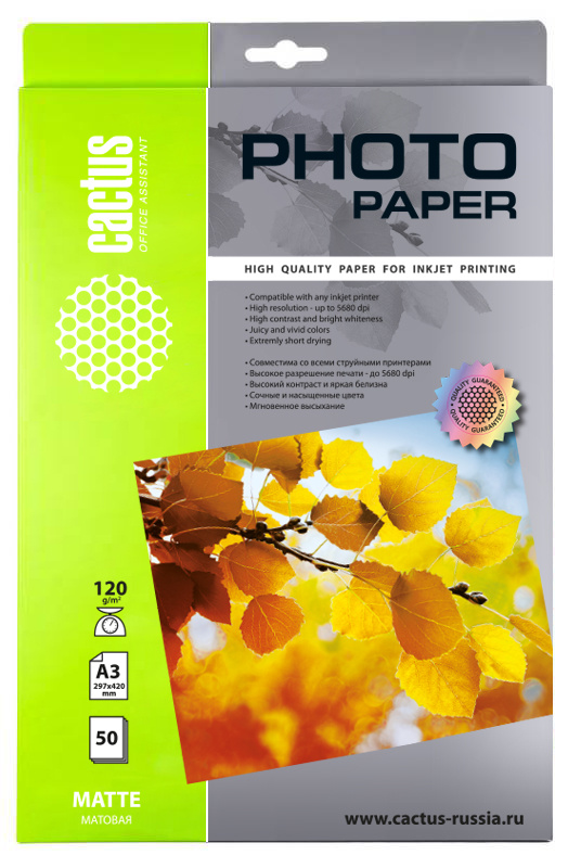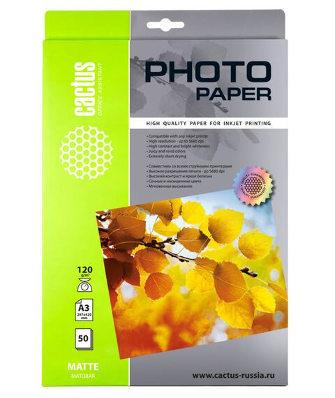 Фотобумага Cactus CS-MA312050 A3, 120г/м2, 50л, белый, матовое, для струйной печати