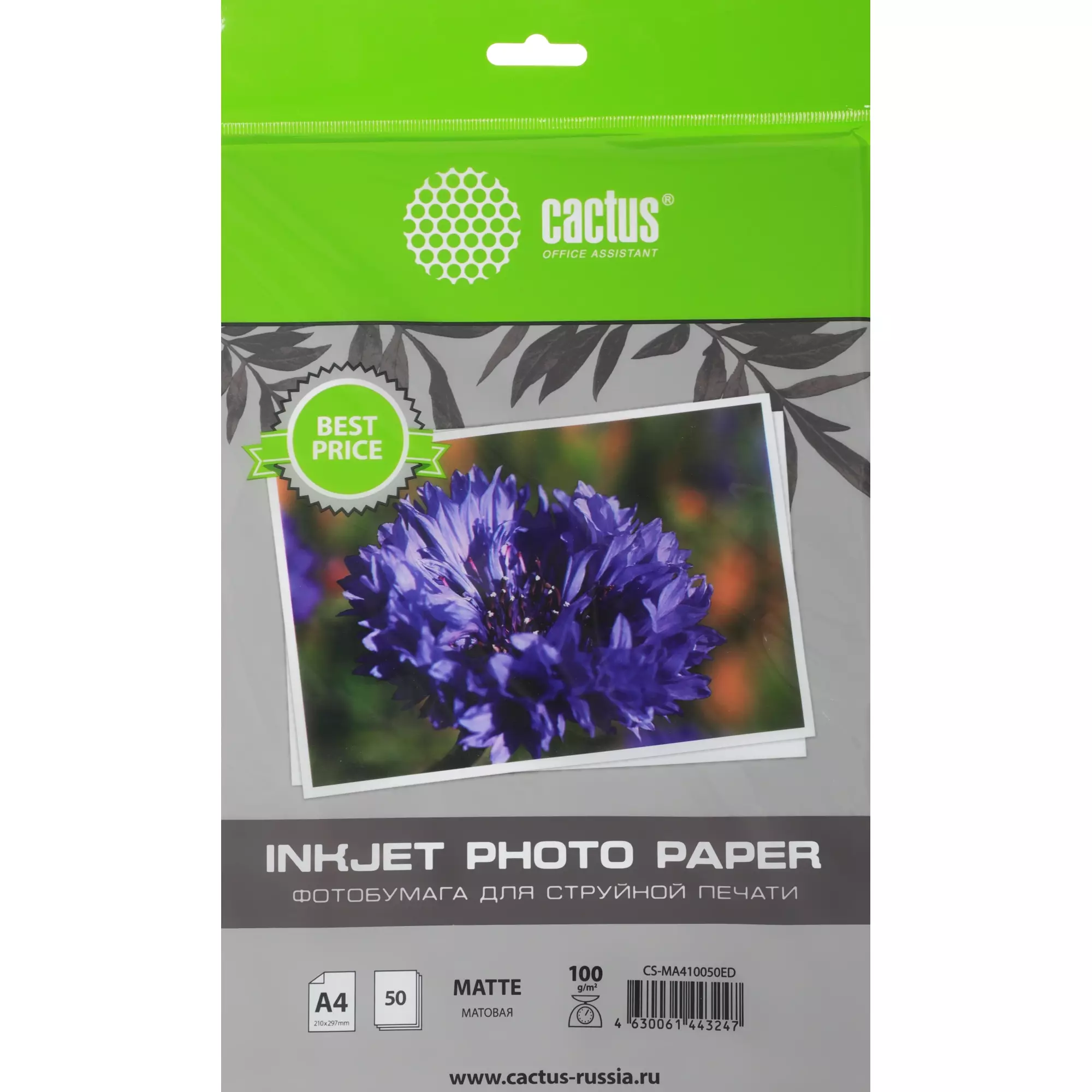 Фотобумага Cactus CS-MA410050ED A4 100г/м2 50л белый матовое для струйной печати
