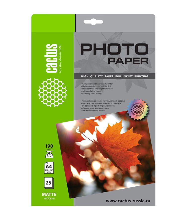 Фотобумага Cactus CS-MA419025 A4 190г/м2 25л белый матовое для струйной печати