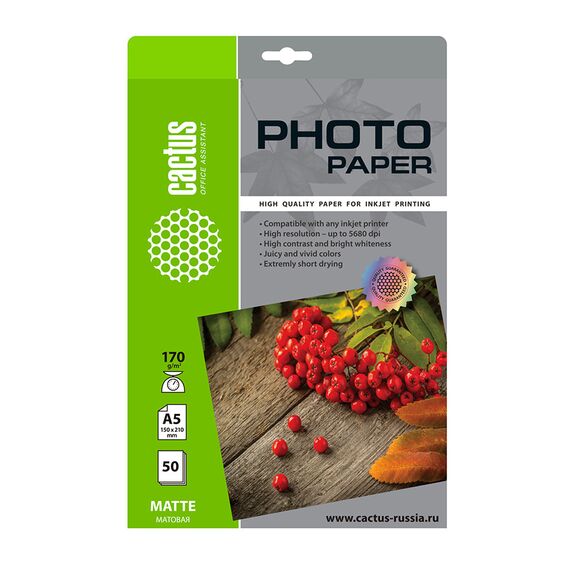 Фотобумага Cactus CS-MA517050 A5 170г/м2 50л белый матовое для струйной печати