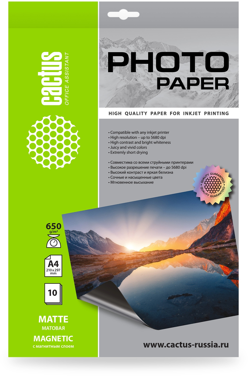 Фотобумага Cactus CS-MMA465010 A4 650г/м2 10л белый матовое магнитный слой для струйной печати