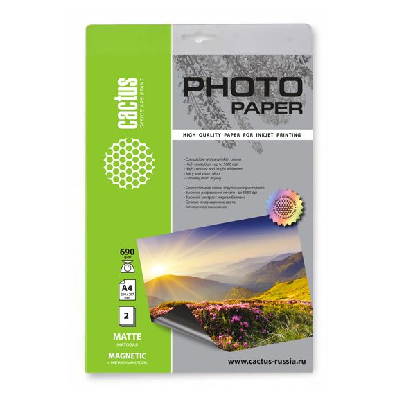 Фотобумага Cactus CS-MMA46902 A4 690г/м2 2л белый матовое магнитный слой для струйной печати