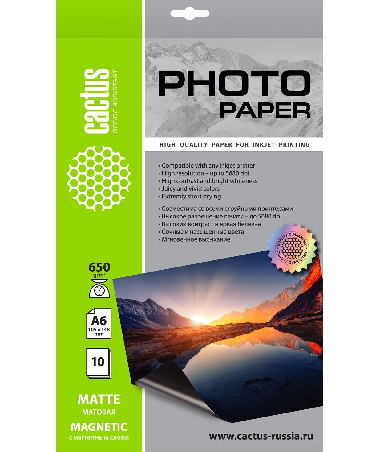 Фотобумага Cactus CS-MMA665010 A6, 650г/м2, 10л, белый матовое, магнитный слой для струйной печати