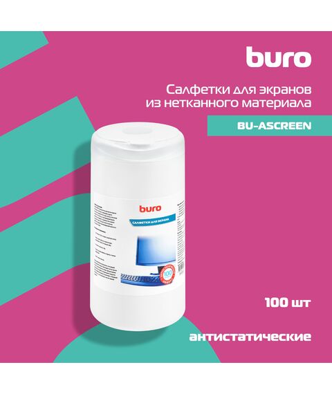 Салфетки BURO BU-Ascreen для экранов мониторов/плазменных/ЖК телевизоров/ноутбуков туба 100шт влажных