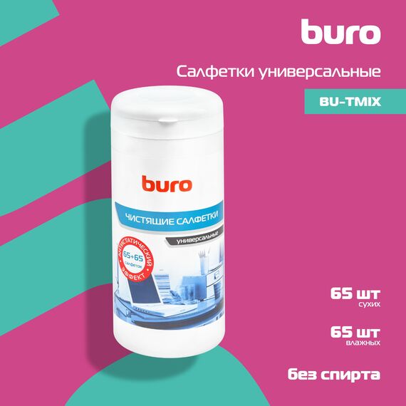Салфетки BURO BU-TMIX универсальные туба 65шт влажных + 65шт сухих